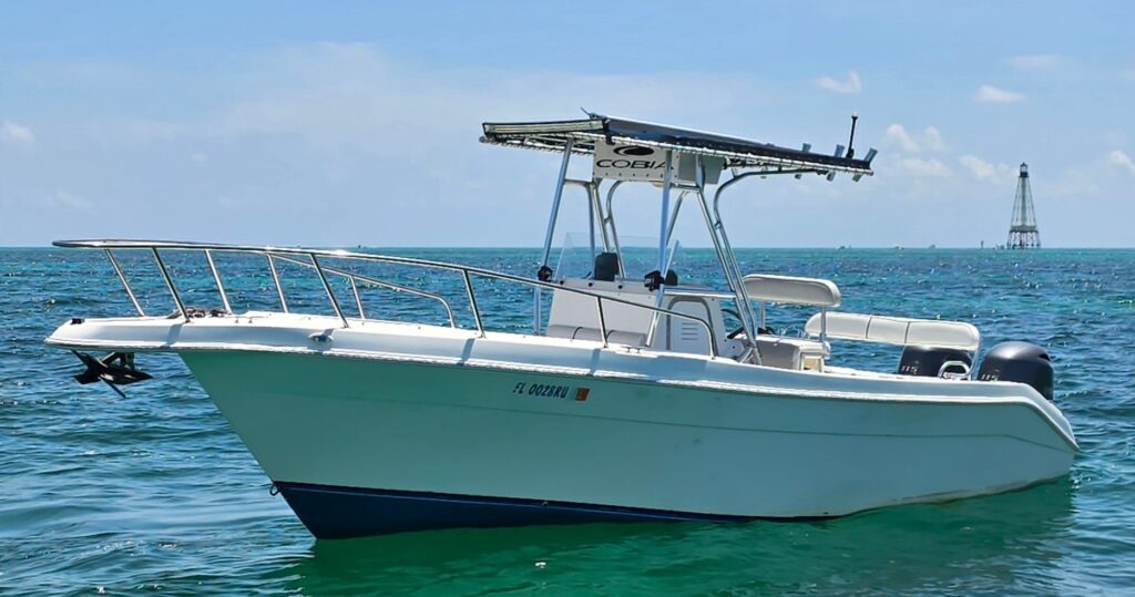 The 25′ Cobia Center Console with twin engines is built for adventure! Features: T-top shade, live well, rod holders, swim ladder, spacious deck, and premium seating.